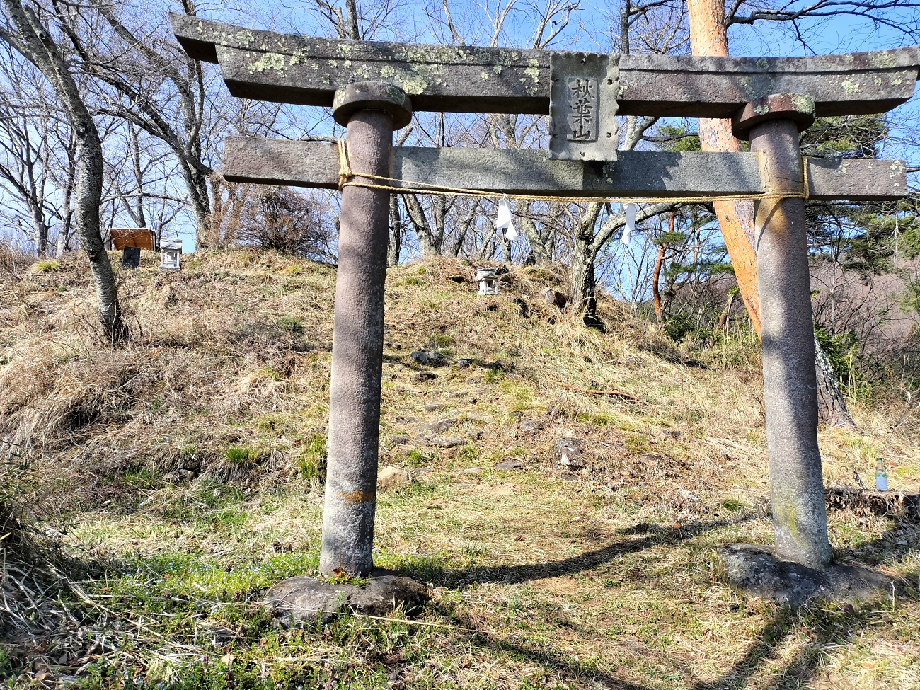 道路から5分程度で城跡付近に到着。ここには横尾神社がありました。