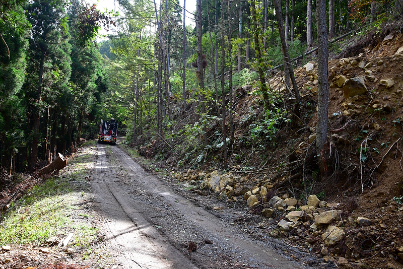 尾根に取り付こうとしたら大型トラックがやってきました。