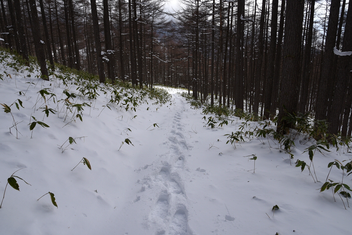 まだまだ雪は少なめですが、スノーシューで歩きたいので、踏跡が無い場所を選んで歩きます。