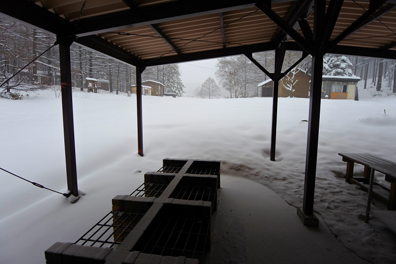 前日まで、ほぼ雪はありませんでしたが、朝から激しく降り続き30cmほど積もりました。