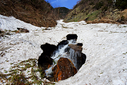 雪解けが早くて、雪渓の上を歩けるのは今日までのようです。