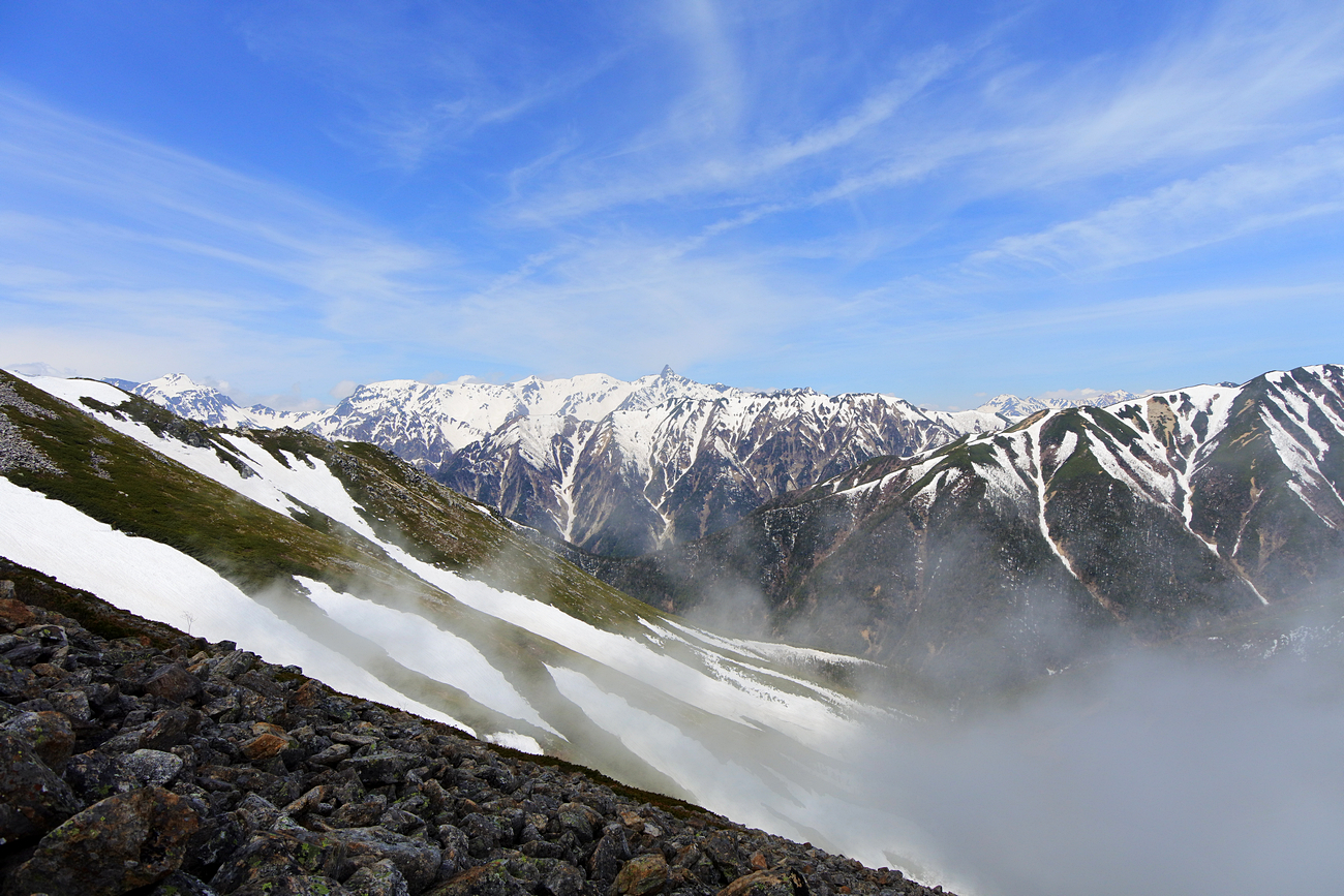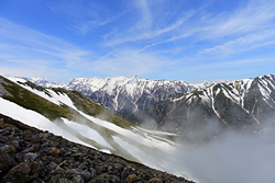 5月の常念岳に登るのは、いつ以来だろうか?今シーズンは残雪が少ないので一ノ沢の雪渓も短かった。