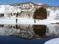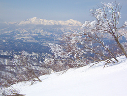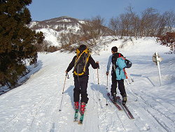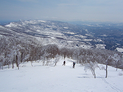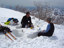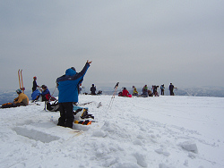 最初はビビッて滑り始めたが、ジャンプターンで何とか誤魔化して平地に移動。ステップがブレーキの役目をしてるので、そんなにスピードは出ないけど、皆さんのペースに合わせる為に必死になってストックで漕ぐ。車に戻ってからストップスノーだったと聞くが、ステップが邪魔して気付かなかった。