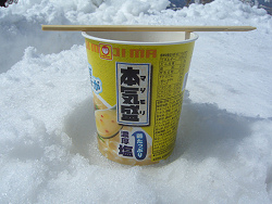 テーブルを製作してカップラーメンを頂く。他の人達は滑りに行ってしまったので昼寝をしながら待っていたら、どんどん人が増えてきた。