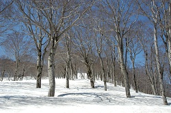 それにしても眩しくて暑い。 もうちょっとで山頂だけど誰も歩いていないブナの森は気持ちが良い。