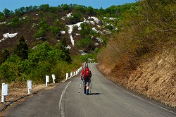 ゲートが自由に動き、ずーっと先まで車で行けそうだったが、雪のある場所まで遠くないので板を背負って行動開始する。