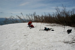 しかし、朝の天気予報によると、このまま白馬方面へ行っても途中で引き返してきそうな予感がしてきたので、パチンコ屋へ行こうとしてたマッケンを自宅まで迎えに行って、強制的に鍋倉山へ連れてきた。