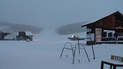 3日ほど前に雨が降り、その上に乾いた雪が積もったけど、まだまだ雪が少なくて、ゲレンデではスノーマシンが動いている。 家を出てくる時には雪崩の心配もしていたが、ゲレンデ脇のブッシュを見てからは、逆に快適に滑れるか心配になってきた。