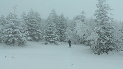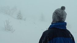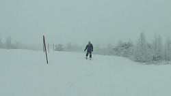 北極からダイレクトに低気圧がやってきて、やっと根子岳も普通に滑れる状態になったので、リフトが動く前にゲレンデを通過して美味しいところを頂くことにした。