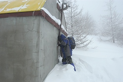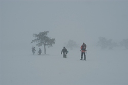 再び真っ白な世界に戻り、山頂を目指す。 地形が分かってるだけに真っ白な山でも歩くことができるが、知らない山だったらビバークだろう。
