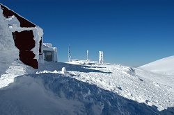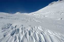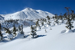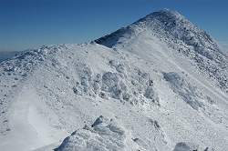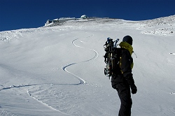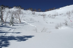 急な斜面を登りきると5人組みのグループがラッセルしながら下山してきた。