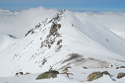 時間に余裕が出来たので写真を撮りながら歩いていたらヘロヘロになってしまい、何とか朝日岳を越えて山頂に到着する。