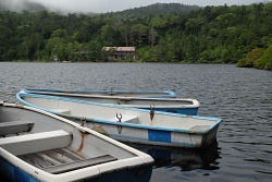 高見石小屋を過ぎると、大きな石がゴロゴロしてて表面がツルツル滑って怖い。しばらく我慢しながら歩いてると白駒池が見えてきた。