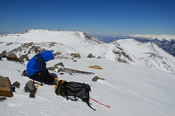 雪上訓練も兼ねて山頂にやってきた。今日は高気圧の真ん中にいるようで、とっても見晴らしが良い。