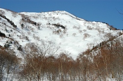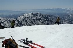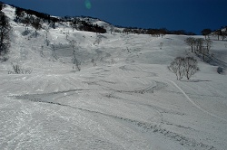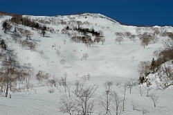 雪が腐ってて、苦戦しながら佐渡山鞍部に到着するが、トラバースルートは失敗だった。思った以上に体力を使い、佐渡山鞍部から滑りは重い雪に悩まされ、キックターンの連続だった。 |