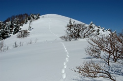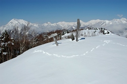駐車場に戻ってから望遠レンズで山頂直下を覗いてみるとシュープールが残っており、ちょっとだけ自己満足の世界に陥った。