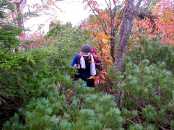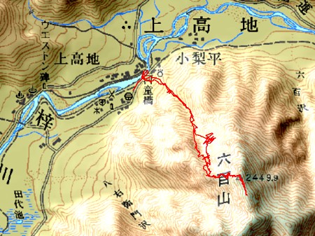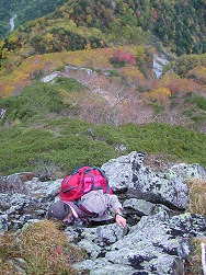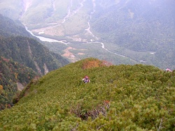 五千尺ホテルの裏から登山者の目線を気にしつつ、さっさと堰堤を越えて山へ消える。土石流の監視小屋がある為か、登山道もハッキリしてて分かりやすい。2つ目の堰堤を越えると土石流を感知する電線があって、絶対に切らないよう慎重に越える。もし切ってしまったら大騒ぎになるだろう。