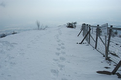 三方ヶ峰に到着すると大きな人間の足跡が残されていた。高峰温泉からやってきたと思われ、午前中の足跡か・・・。ここはコマクサが群生しているので厳重に柵で仕切られている。 |
