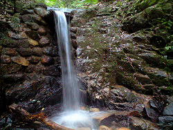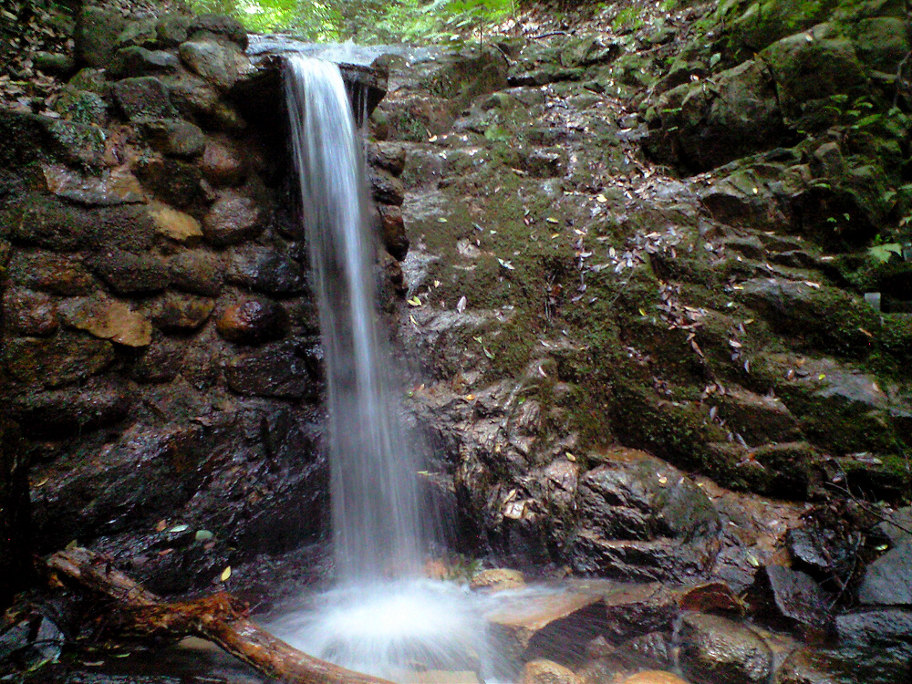 歩き出して数分で長門毘沙門天社が現れる。脇道も何本かあるようで、水の音が聞こえるほうへ歩いていくと小さな滝があった。