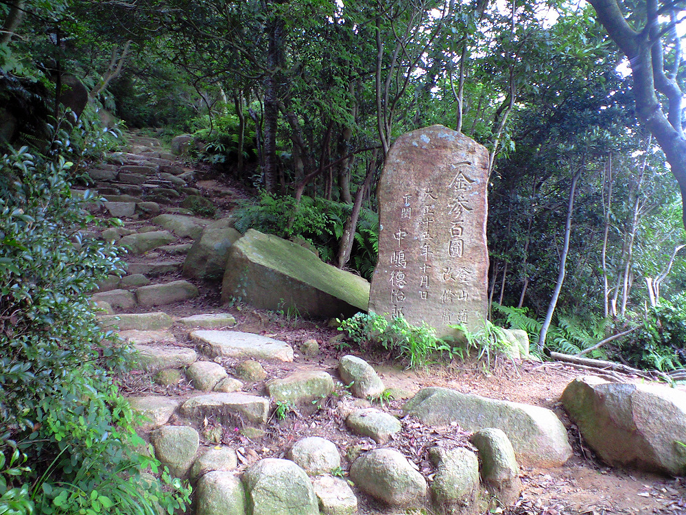 登山口となる石鎚神社で登山道を拝見したところ、それほど厳しいコースに見えなかったので合成樹脂サンダルで出かける事にする。30分ぐらいで山頂へ行けると言っていたので携帯電話とGPSと水筒を持って歩き出す。