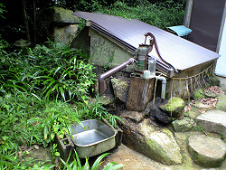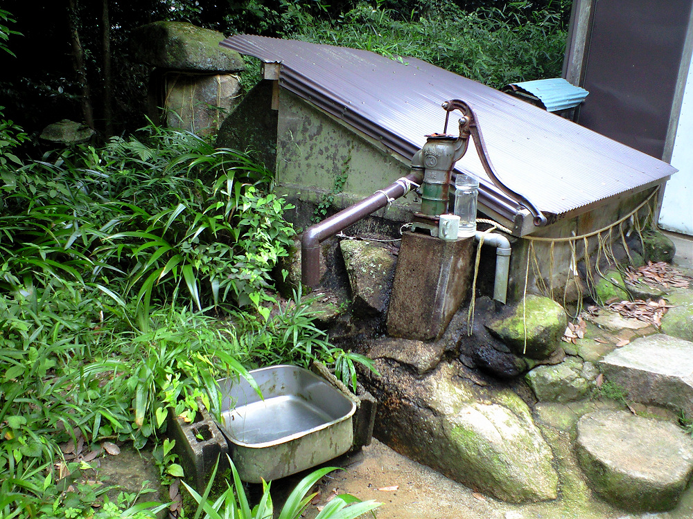簡単に計算したら30分では登れないことが分かり、ペースを上げて四王司神社にやってきた。神社の脇には井戸もあって、呼び水無しで動かしてみたらポンプアップできる。山頂に井戸があるのは珍しいけど、地中にタンクでも埋まっているのかな?