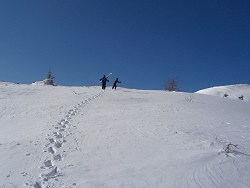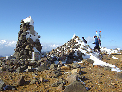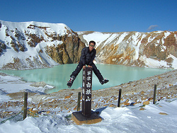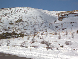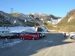 頂上付近から志賀高原や万座温泉が見渡せ、昼寝でもしながらのんびりしたい気分だったけど、帰りの時間も気になっていたので、ちょろっと滑って下山する。色んな雪が混ざっていて、Aさんが滑るには厳しかったと思うが、シーズン初めにしては上出来だった。