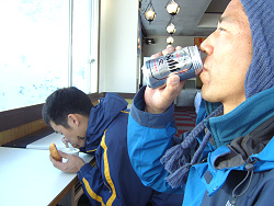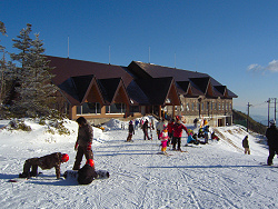 オープン記念といことで記念品を頂き、パンとスープを頂いてからゲレンデへ遊びに行く。コースの雪は、まだ少ないようで、ちょっと距離は短いけど、それなりに楽しく滑って転ぶ。