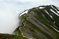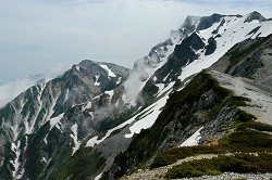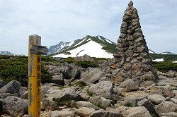 栂池ゴンドラリフト山麓駅(8:00)〜天狗原(9:43)〜乗鞍岳(10:59)〜白馬大池山荘(11:31)〜小蓮華岳(13:33)〜三国境(14:10)〜白馬岳(14:52)〜三国境(15:39)〜小蓮華岳(16:24)〜白馬大池(17:40)