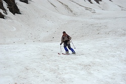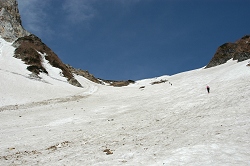 避難小屋の辺りから石が増えてきて嫌な音が頻繁に聞こえてきた。なるべく快適な場所を選んで滑ったつもりだが、気を使いすぎて逆に疲れてしまった。