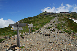 歩いてる人がいないので登山道の真ん中に座って写真を撮っていても誰にも文句を言われそうにない。のんびり昼寝でもしたい気分だが、ツクモグサも見たいので適当にブラブラしながら歩き出す。