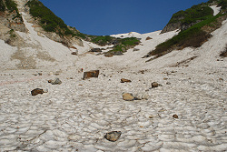 スプーンカットの平らな所を選んで、どんどん登って行く。マッケンも白馬岳に登るつもりでメールを送ってくるが、あっちの現在地が分からないので適当に返事をして先を急ぐ。