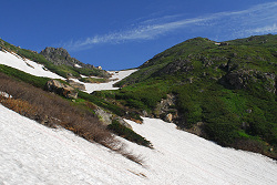 久しぶりに早起きして猿倉へやってきた。 今回の目的は、ウルップソウとツクモグサを見る予定だけど、今年は残雪が多いと聞くので見頃になっているか不安である。しかし、今日は青空が広がっているので、まったりするには良さそうである。