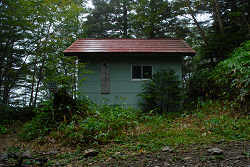 尾根を下っていると「シラベ平管理所」の標識が現れた。ここで登山道は二股となるが、地図には載っていない。尾根を離れる勇気は無いので、そのまま直進する。