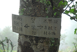 しばらくすると望学台という場所に到着した。またまた地図に載ってないルートがあるらしく、どっちに行っても桂小場に行けるらしい。地図に表示されてるルートはジグザグの「百曲り」らしいので、そっち方面へ行ってみる。 |
