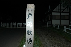 自宅から1時間で戸隠牧場に到着。意外と近いと思ったが、まだ暗かったのでヘッドライトを点灯させて牧場を横断。闇の牧場は、動物の鳴き声が多くて怖い。