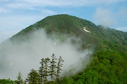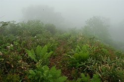 最初の計画では乙妻山にも足を伸ばすつもりだったが、また虫に襲われたら大変な事になるので、展望が開けた場所で引き返す。山頂付近は、心地よい風が吹いているので、虫も少なく快適だったが、帰りの事を考えると憂鬱である。