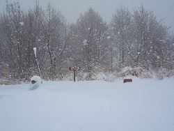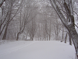 家でボケッとしてたら、どんどん雪が積もってき、平地でも15cmほどになっていた。こんなに積もるのは珍しいので、近くの太郎山へ散歩に出かけることにする。