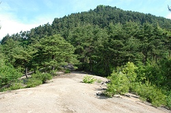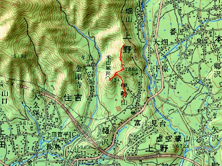 本城の南に連絡しており、北下りの鞍部に幅9mの深い堀切がある。本郭は方20mの削平台形部郭で周囲の展望は実によい。