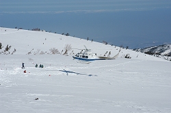 天候が安定した3月下旬と5月の上旬にヘリを利用して天狗原からゲレンデまで滑ることができる。ゲレンデからシール歩行で天狗原に登るのも可能だが、ヘリに乗ったことが無かったので9000円を払って数分間のフライトを楽しむ事にした。