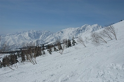 栂の森ゲレンデで再び高リフトに乗って天狗原や白馬乗鞍岳をジックリ眺る。ここから親の原ゲレンデまで何kmあるのだろうか?快適に滑れる距離が短かったので、ちょっと残念である。お金があれば、もう1回ヘリに乗りたい気分だ。