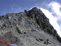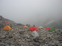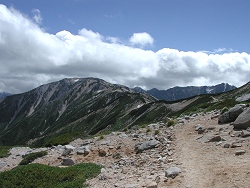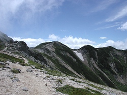 双六小屋(4:27)〜千丈沢乗越(7:46)〜槍岳山荘(8:49)〜 大槍(9:28-11:10)〜殺生ヒュッテ(11:48)