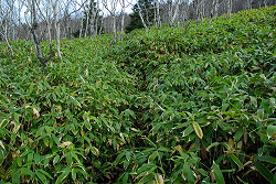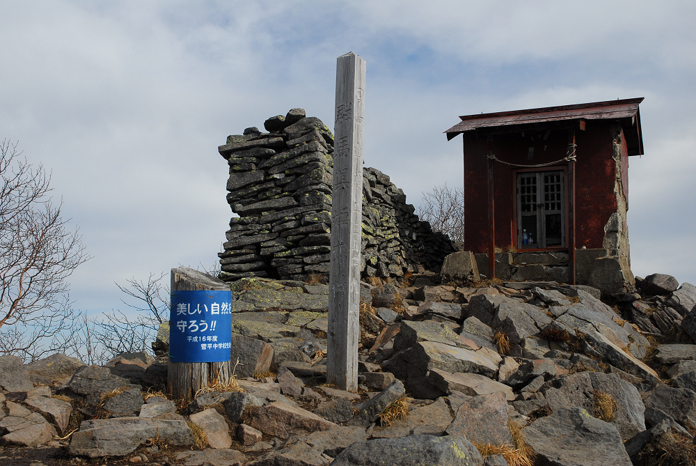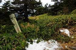 今日は登山道が凍っていたら困るのでダブルストックで歩き出すが、それほど寒くて朝露に苦しめられる。牧場を過ぎると少しは歩きやすくなるけど、登山道の下草を刈った形跡は無く、昨年と同じような感じだった。誰が管理しているのか知らないけど、このまま放置すれば廃道になりそうな勢いである。