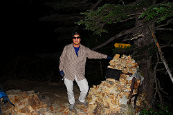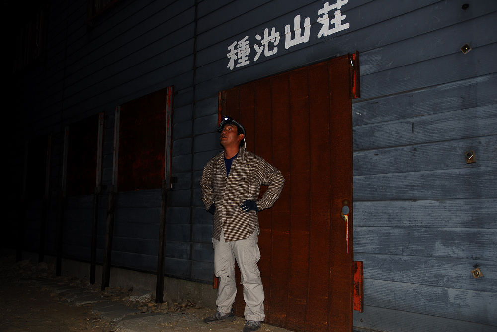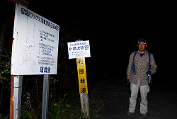 車に乗ったとたん「ヘッデンを無くしたので上下に振って充電できるLEDライトを持参した」と言っていたが、自分も使った事があって山では使い物になら無い事を知っていたので、予備に持ってきていたヘッドランプを貸し出す事にする。