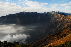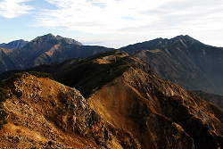 この時期になると山小屋も閉まっていて、縦走路には僅かな足跡と雪が残っていたけど、立山方面を眺めると雪が少ないように感じられる。