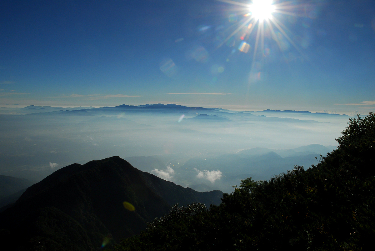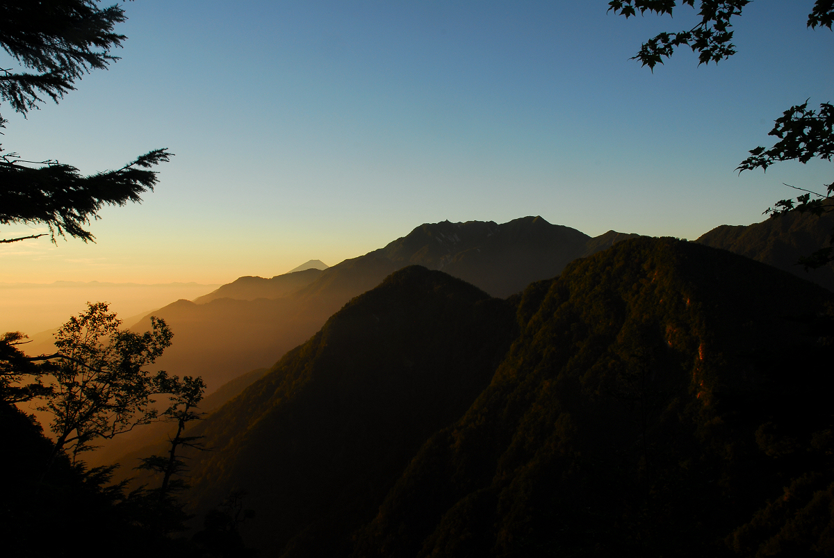 黒戸山が邪魔して御来光が拝めず、五合目小屋跡付近で登山道を外れて景色を拝む。空の様子からして、今日は素晴らしい御来光だったに違いない。