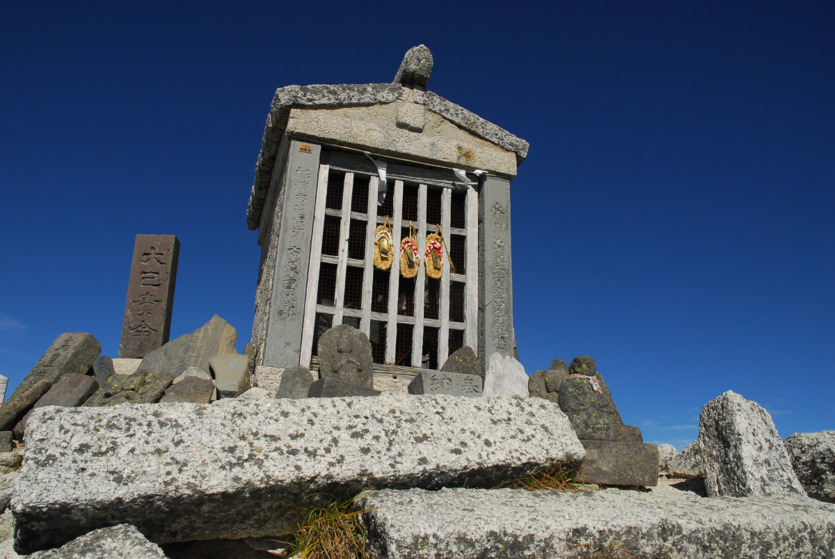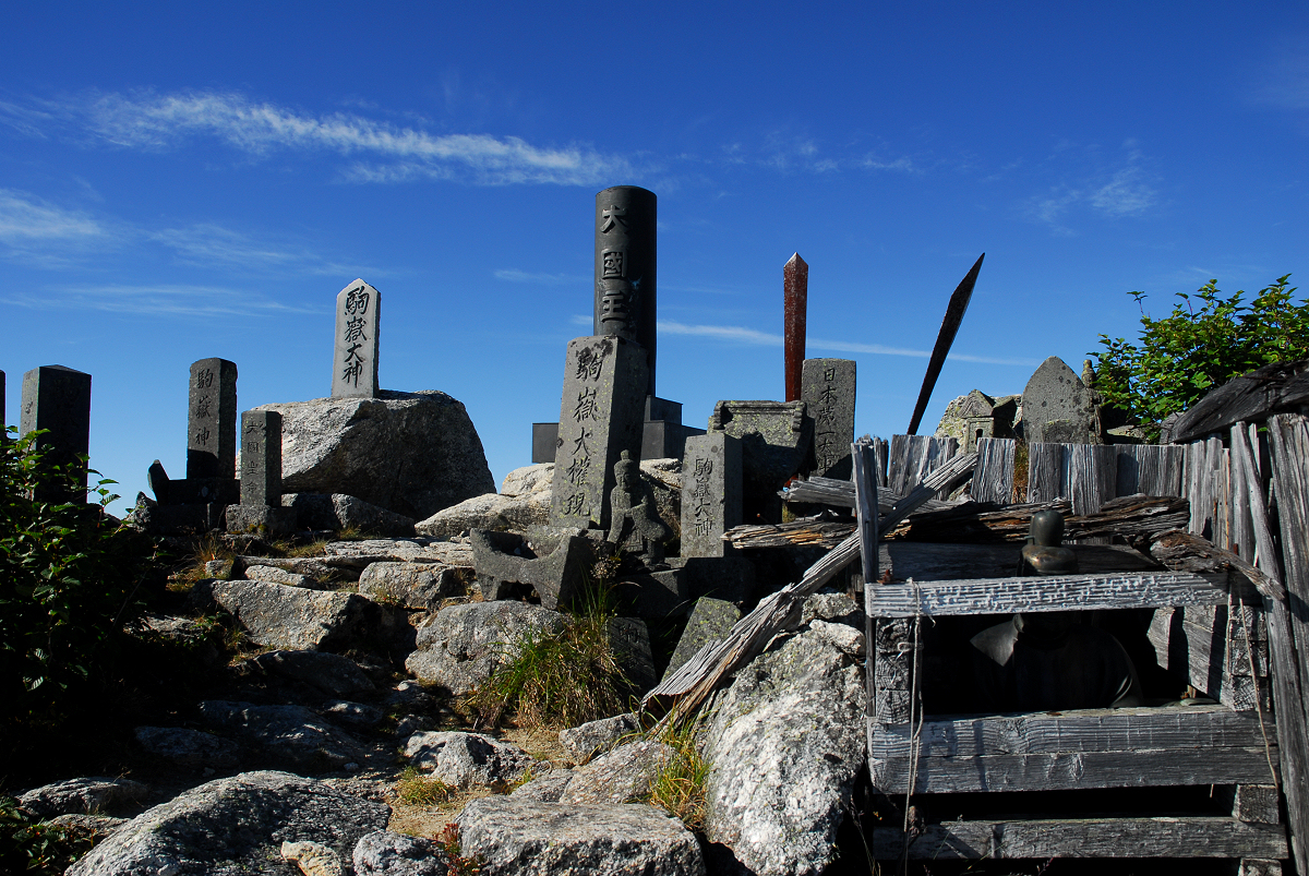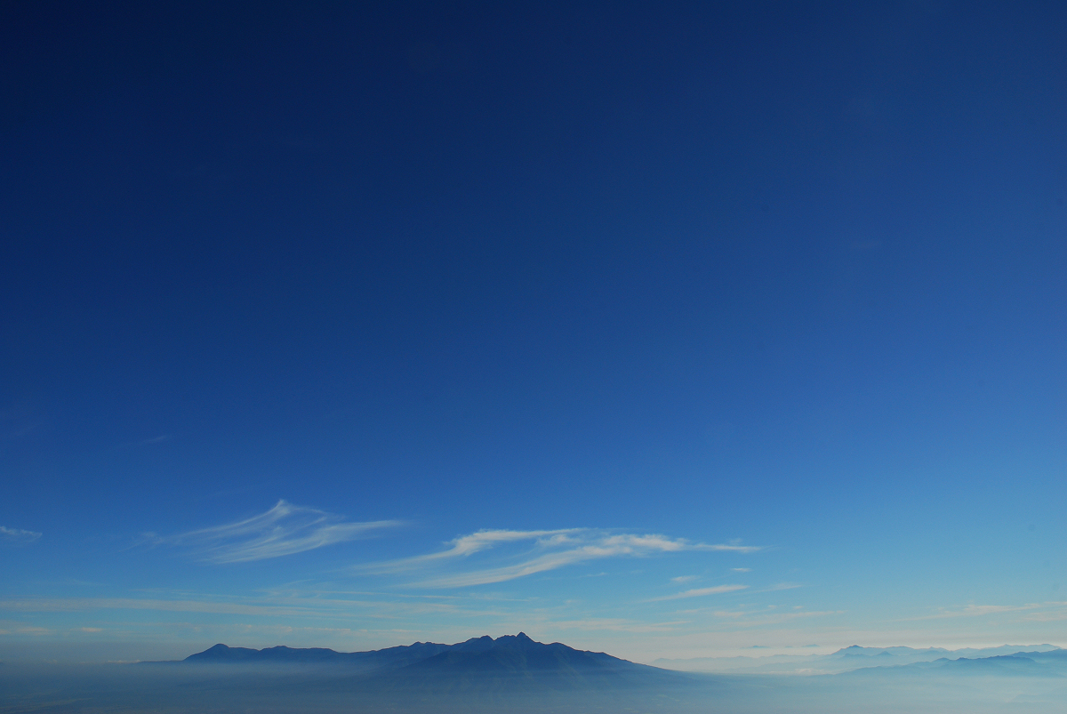 展望が開けてきたので三脚を取り出して色んな場所を切り撮る。八ヶ岳には筋雲が見えていて、すっかり秋の空となっていた。雲が湧き上がる前に頂上に到着出来そうだったので、ペースを落としてじっくり構えてみた。