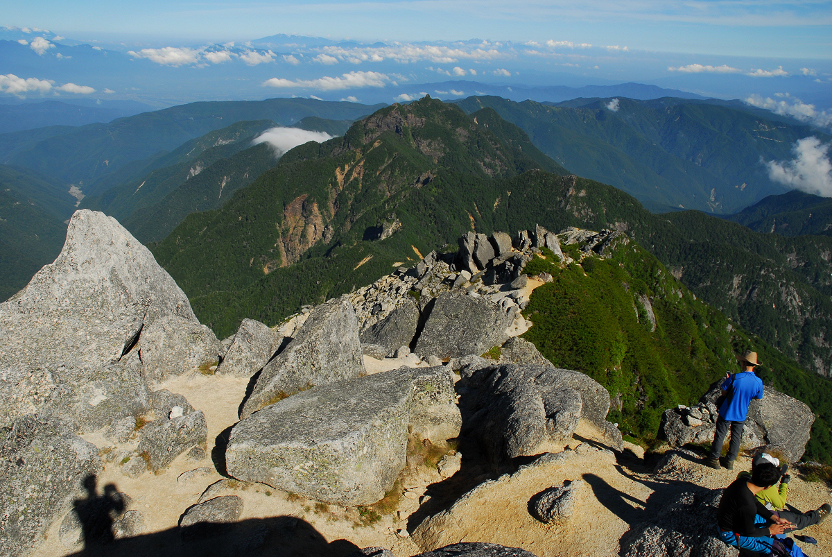 その時は誰もいなくて景色を楽しむ余裕は無かったけど、今回は北沢峠からやってきた人達が大勢おり、とっても賑やかである。