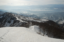 本日の目的地は貝立山と三方岳。ゲレンデを登って貝立山に立つが、その先で少々道に迷う。三方岳がハッキリしなかったので野々海池経由で山頂へ。多少の遠回りになったけど時間的には早かったかもしれない。