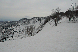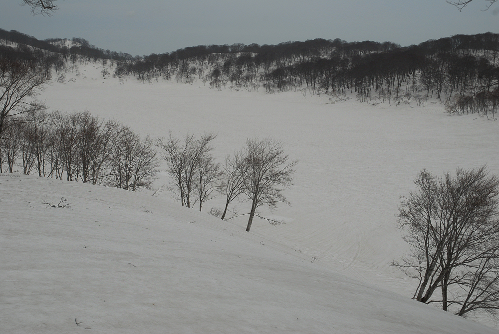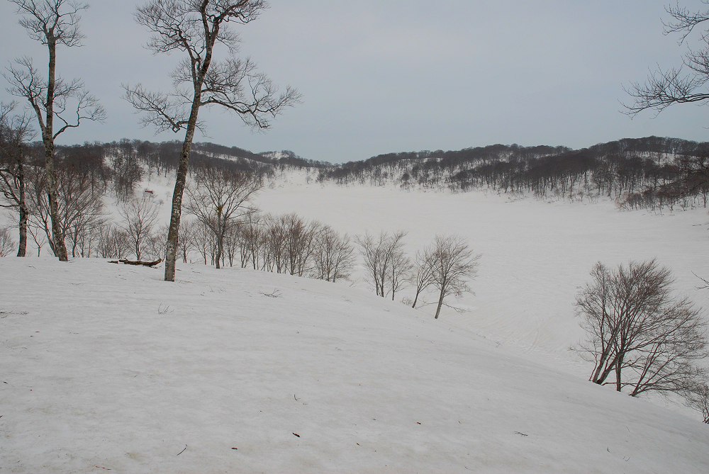 野々海池周辺は緩斜面が多くて歩きが主体となる。滑る事を考えると物足りないが、ブナの原生林が素晴らしいので散策するには楽しい場所でした。