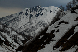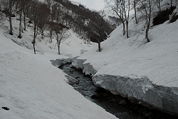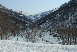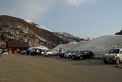 荒管沢の出合いからは、ほとんどスキーが滑らず、一生懸命漕いで駐車場に戻る。